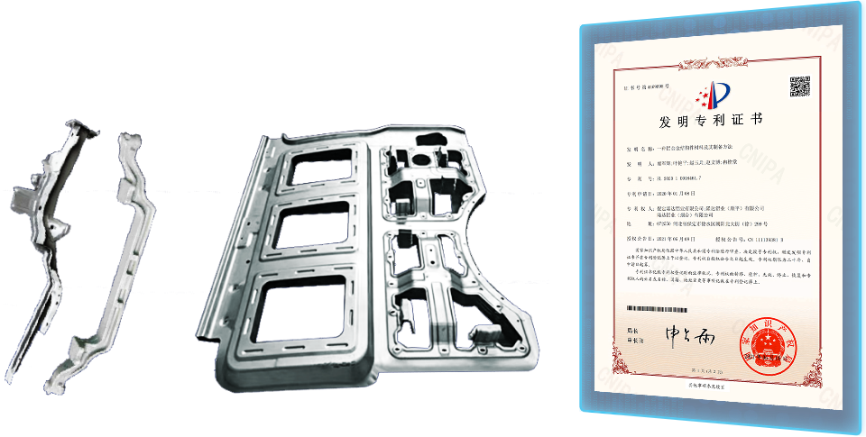 集团研发的免热处理合金材料,实现了汽车零部件在一体化、大尺寸、薄壁、结构复杂和热处理易变形的新能源汽车结构件“铝代钢”材料的替代,打破了国外在该领域的产品垄断和技术封锁,实现了免热处理高性能材料的国产化。